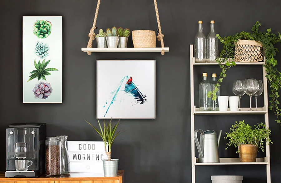 This is all about enjoying images you love. It could be a photo off your phone, a printable poster purchased on Etsy, or a print that we source for you based on your tastes.