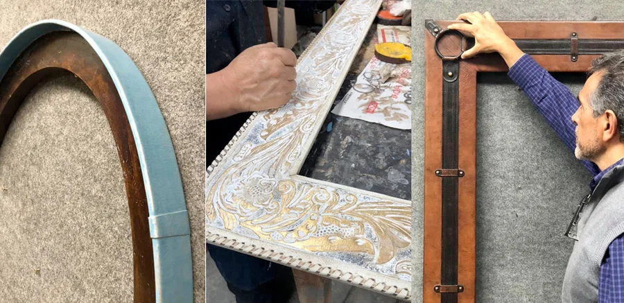 Gold leaf is one of the oldest frame finishes. We source ours from artisans like Goldleaf Framemakers out of Santa Fe, New Mexico.