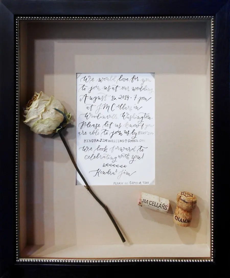 - Create custom shadow boxes featuring items from your wedding such as invitations and boutonnieres.