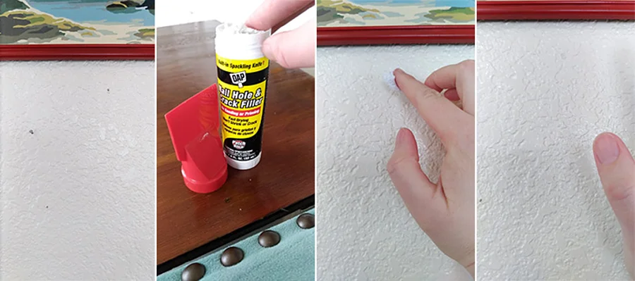 Let’s remember two things: You may have to fill a few holes, but you won’t ruin your walls. Shown above, applying filler is an affordable and quick solution.