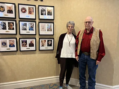residents along with a current photo and a former military photo of each person who served. They spearheaded the creation of the wall with a goal to have it completed by Veteran’s Day in 2024.