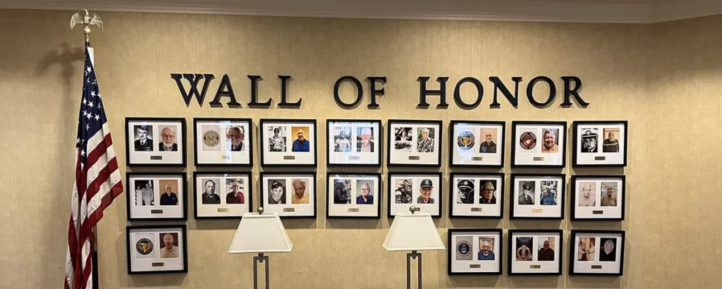 “The humility in our residents telling their stories whether they were in combat or not was moving to learn about,” Friedman shared. “There is incredible unity when we celebrated the dedication of the wall. There was so much pride in the residents’ hearts. Jon and Vicki were such an incredible part of this and our activities assistant, Samantha Saddler offered up so much support in getting the wall accomplished. We’ll continue our wall as new people move in.”